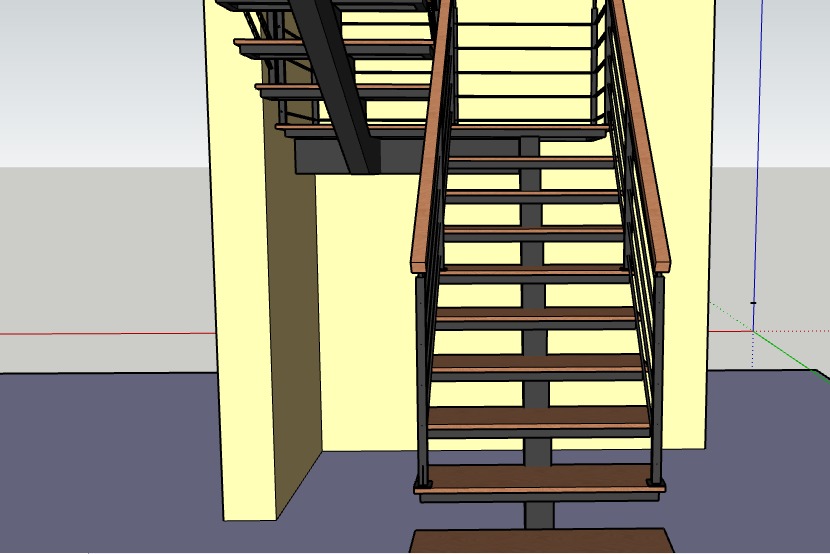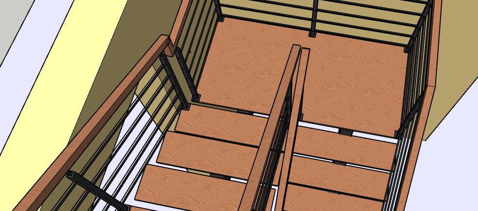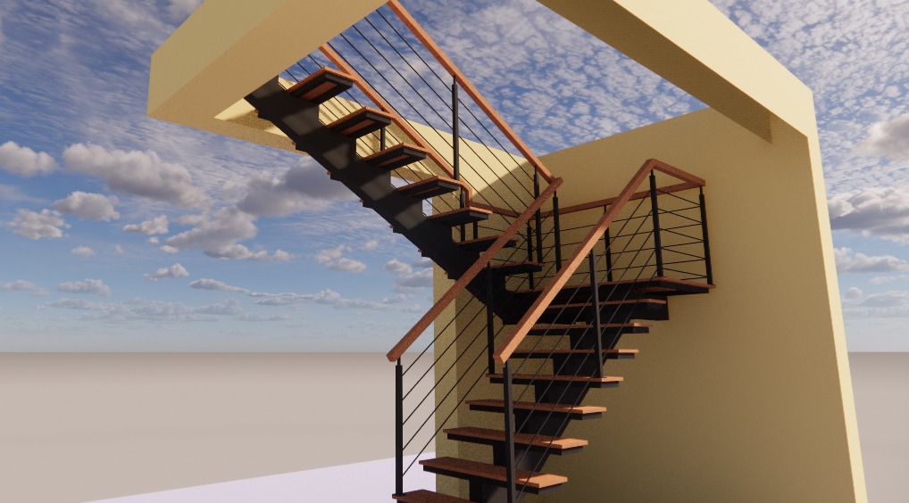 Speck bahan tangga menggunakan Baja WF 150mm dan Kayu menggunakan Meranti Merah tebal 2cm.