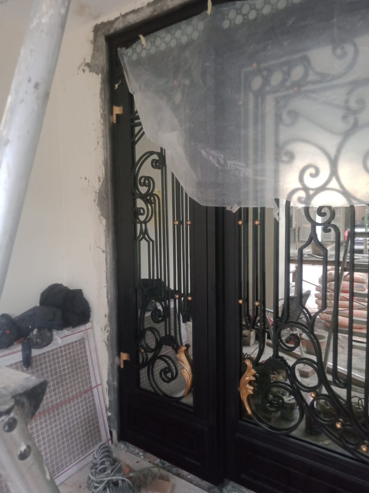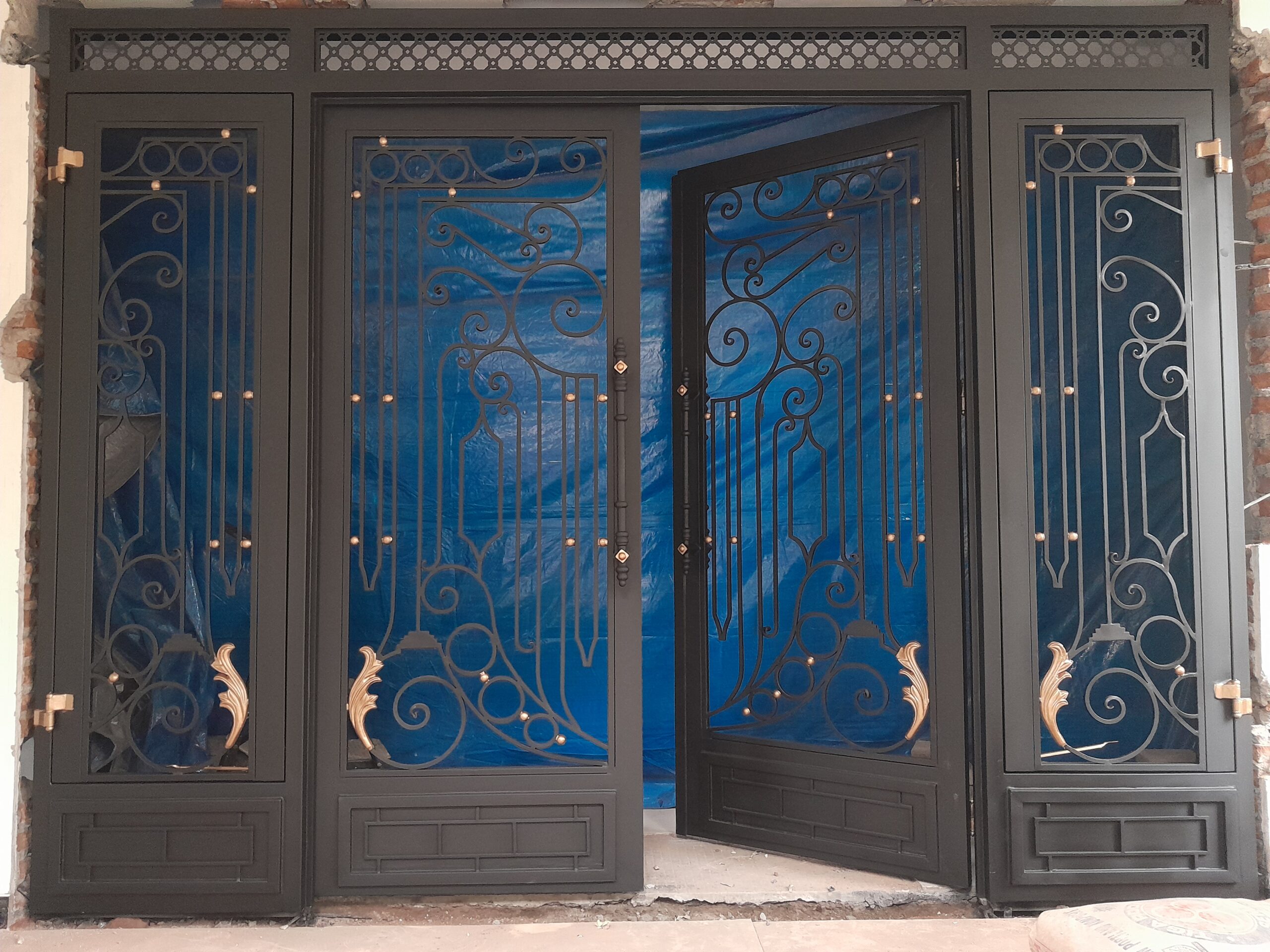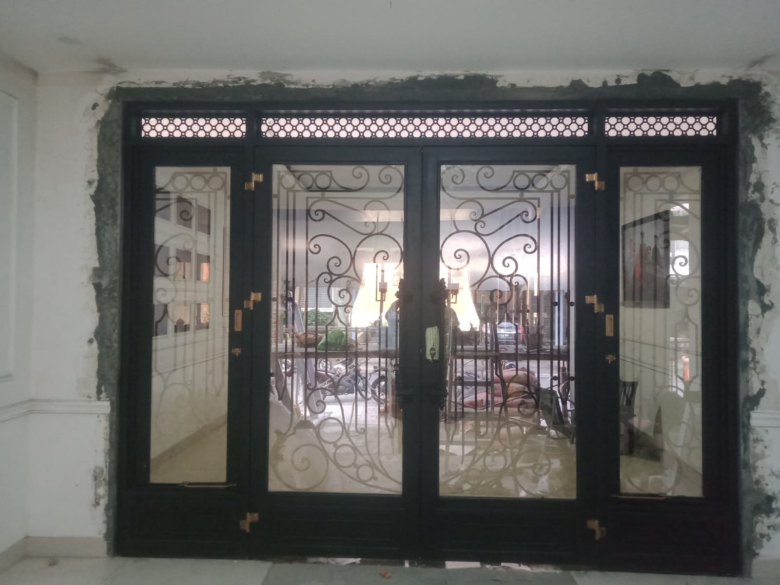 Model seperti ini sangat cocok untuk model rumah klasik ataupun minimalis. Dengan speck bahan : Besi galvanise 40mm x 80mm (Bingkai pintu). Besi galvanise 100mm x 50mm (Kusen Pintu). Besi Nako 12mm full (Motif). Kaca one way 5mm. Finishing epoxy dan cat duco.
